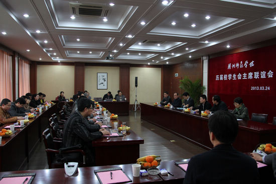 莘莘學子心,濃濃母校情。3月24日上午,歷屆校學生會主席座談會在行政樓204會議室召開。校長胡璋劍、校黨委副書記周家健、老領導蔡清江等出席,原嘉興師專、原湖州師專、原湖州師范、原湖州衛校和湖州師范學院的40多位歷屆校學生會主席參加了座談。會議由校友聯絡辦公室主任杜寧主持。