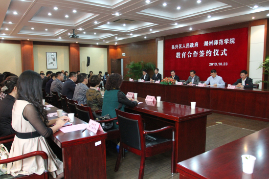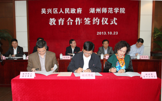 2010年4月,我校與吳興區(qū)人民政府簽訂政、產(chǎn)、學、研全面合作協(xié)議。今年10月14日,我校附屬第一醫(yī)院與區(qū)人民醫(yī)院、環(huán)渚社區(qū)衛(wèi)生服務中心組成全市首個醫(yī)療聯(lián)合體。這次簽訂《吳興區(qū)人民政府與湖州師范學院教育合作協(xié)議》是雙方推進全面深入合作的又一重要步驟。雙方協(xié)議共同舉辦湖州師范學院附屬初級中學和附屬小學,合作開展教育行政管理人員和骨干教師專項培訓,合作開展基礎教育研究和教育教學基地建設,并且建立人員互聘機制和歸口協(xié)調(diào)機制等。