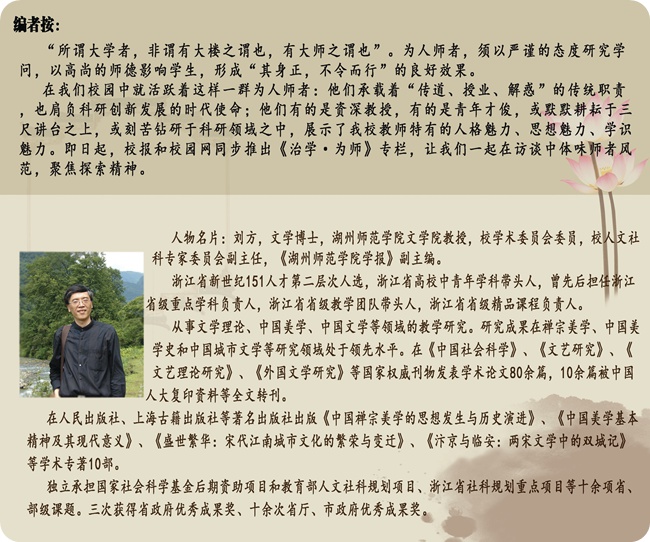 劉方:我進入這個領(lǐng)域,先是從個人興趣愛好開始的。我80年代讀大學的時候正好趕上中國的“美學熱”,在這個契機下我開始對美學產(chǎn)生興趣,在大學讀書時開始研究美學。我的畢業(yè)論文是有關(guān)莊子美學的,而這篇論文也成為我第一篇公開發(fā)表的論文,這為我以后的美學研究奠定了基礎(chǔ)。研究生時我也是主攻美學的。所以以后我把這一興趣做為了我學術(shù)研究的主要方向。