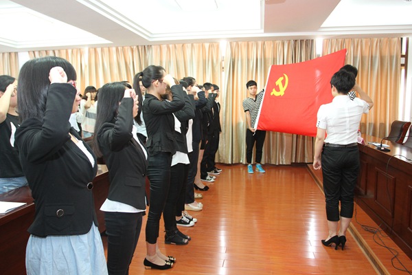 宣誓儀式在慷慨激昂的國際歌聲中正式開始。在市優(yōu)秀黨務(wù)工作者、政治學(xué)院黨總支副書記黃薇的領(lǐng)誓下,100名新黨員緊握右拳,面對鮮紅的黨旗莊嚴(yán)宣誓,表達(dá)了入黨的愿望和遵守入黨誓詞的決心。