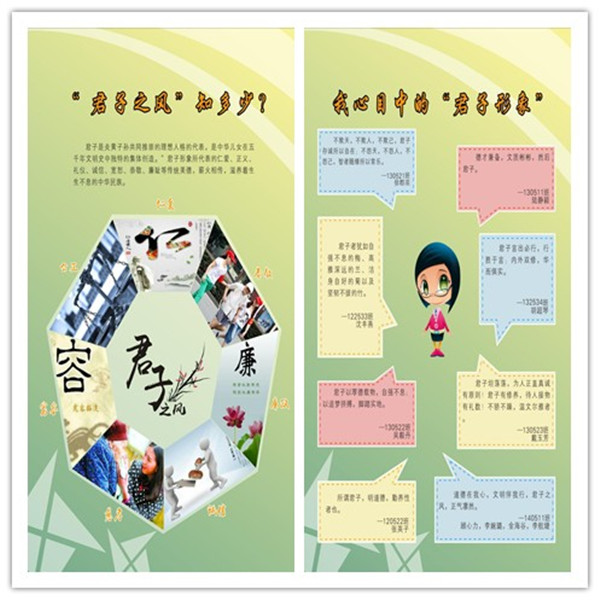 學院遵循大學生心理認知規律,從知、情、意、行角度,結合專業特點科學地對主題教育活動進行頂層設計,通過微信、櫥窗、網站等形式營造良好的輿論氛圍。如為普及“君子之風”知識,通過微信形式開展了“弘揚‘君子之風’”(中英版)、學者論“君子之風”等線上自主學習活動;通過微信、展板等形式開展了“‘君子之風’知多少”線下宣傳普及活動。為深入了解大學生心目中的君子形象及大學生不文明現象,舉辦了君子品格微語錄征集、我是拍客-尋找鏡頭下的不文明現象等活動,并把優秀作品通過微信、展板等形式進行展示。此外,學院還開展了“君子之風”主題英語角活動、“明禮誠信,立志成才”主題紅色悅讀季活動,積極引導學生在學習語言的過程中進一步傳承和發揚中國優秀傳統文化。