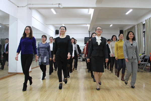 什么是禮儀?怎樣進行形象設計?如何掌握崗位禮儀?……鮑娟老師結合高校教師的職業特點及大學生需具備的禮儀文化素養,運用大量的圖片和生動的事例,向大家詳細介紹了著裝原則、色彩搭配、男女性職業裝禮儀、公務活動接待禮儀、公務溝通規范、中西方宴請禮儀等。陳麗梅老師重點對學員進行了形體訓練,對學員的站姿、坐姿、走姿、蹲姿、手勢等進行了現場示范與指導,并通過豐富的模擬情景訓練,讓學員們更加熟練的掌握各類禮儀的要領。