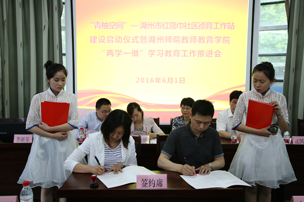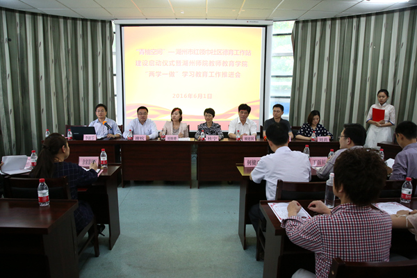為進(jìn)一步提高“兩學(xué)一做”學(xué)習(xí)教育的實(shí)效性,推進(jìn)湖州市“結(jié)對(duì)共學(xué)共做 攜手共建共進(jìn)”活動(dòng),教師教育學(xué)院黨委根據(jù)省委省政府《關(guān)于全面加強(qiáng)中小學(xué)德育工作的若干意見(jiàn)》文件精神,圍繞立德樹(shù)人根本任務(wù),開(kāi)展“青柚空間——紅領(lǐng)巾社區(qū)德育工作站”建設(shè)。6月1日下午,項(xiàng)目啟動(dòng)儀式在余家漾社區(qū)舉行。市文明辦、團(tuán)市委、市教育局基教處、吳興區(qū)文明辦、吳興區(qū)團(tuán)區(qū)委、飛英街道和我校文明辦、團(tuán)委、教師教育學(xué)院相關(guān)負(fù)責(zé)人,教師教育學(xué)院學(xué)工辦、分團(tuán)委、學(xué)生黨支部負(fù)責(zé)老師,第一批建設(shè)單位的黨組織書(shū)記、大學(xué)生志愿者代表、社區(qū)家長(zhǎng)代表、少先隊(duì)員代表參加此次活動(dòng)。