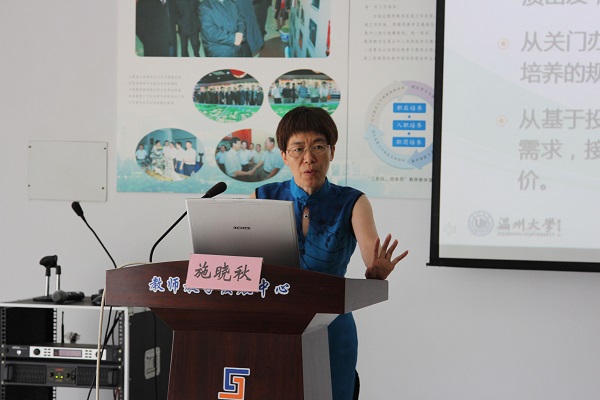 7月7日下午,我校邀請(qǐng)省教學(xué)名師、溫州大學(xué)教務(wù)處處長(zhǎng)施曉秋教授來(lái)校,做“提高認(rèn)識(shí) 理清家底 明確方向 促進(jìn)內(nèi)涵發(fā)展”的專業(yè)評(píng)估專題講座。學(xué)院院長(zhǎng)、教學(xué)院長(zhǎng)、專業(yè)負(fù)責(zé)人、教學(xué)秘書(shū)及相關(guān)教師、教務(wù)處等相關(guān)職能部門工作人員近90人參加。