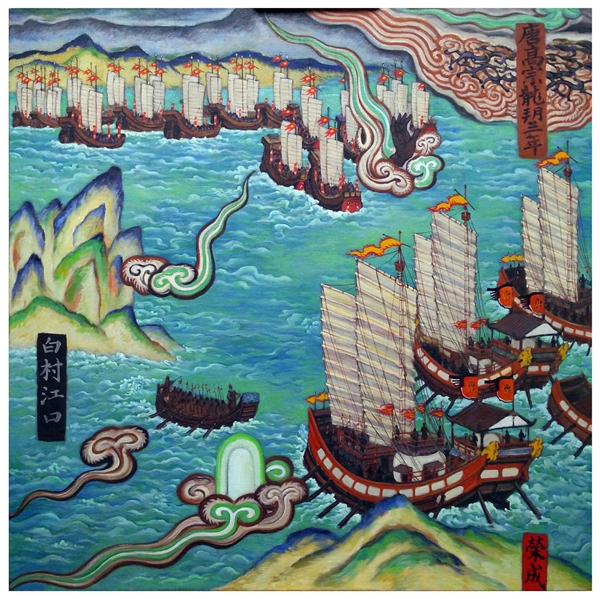 近日,國家藝術基金《風帆時代》海戰繪畫作品展——海上絲綢之路兩千年展覽在深圳大學美術館開幕,藝術學院沈紅泉老師油畫作品《白江口大戰前夕》入選此次作品展。