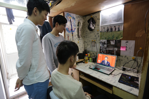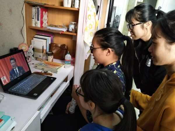 學(xué)生宿舍里,沒課的同學(xué)們?nèi)齼蓛蓢诠P記本電腦前,仔細聆聽著習(xí)近平總書記所作的報告,不時為國家取得的歷史性成就贊嘆稱好。學(xué)生張皓一難掩心中的激動表示:“習(xí)近平總書記強調(diào)的‘歷史和現(xiàn)實都告訴我們,青年一代有理想、有擔(dān)當(dāng),國家就有前途,民族就有希望,實現(xiàn)我們的發(fā)展目標(biāo)就有源源不斷的強大力量’一直鼓舞著我,這次聆聽了習(xí)近平總書記的報告后,我更清晰地意識到自己身上沉甸甸的責(zé)任。從現(xiàn)在起,我將更加努力,不斷提升自身專業(yè)技能,用自身所學(xué)回報國家社會,為‘中國夢’的實現(xiàn)貢獻力量!”