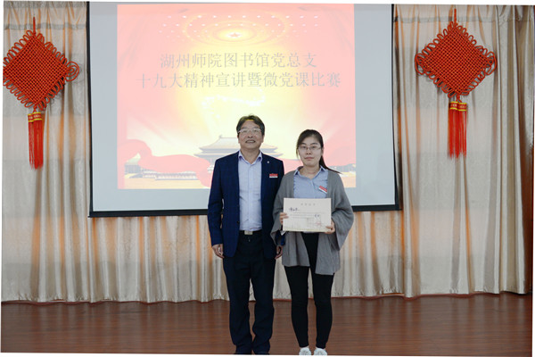 本次微黨課參賽者精彩的演講激起了在座館員滿腔愛國情,經全體館員打分,傅海燕榮獲一等獎,寧培龍、呂佳燕榮獲二等獎,李金花、李萍、葉見春榮獲三等獎。賽后,陳六松書記激情地講述了自己對黨的十九大報告的理解,并為本次黨課比賽進行總結,微黨課比賽在全體館員的掌聲中圓滿結束。