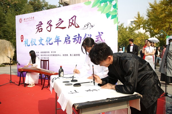 杜寧在致辭中指出,君子禮儀文化傳播是我校大學(xué)生德育的主要載體,也是“君子之風(fēng)”建設(shè)的重要落腳點(diǎn),對加強(qiáng)大學(xué)生禮儀素質(zhì)教育,培養(yǎng)學(xué)生文明禮儀素養(yǎng)與形象塑造能力,提升學(xué)生人際交往與溝通能力,進(jìn)而培育具有高尚道德、高雅情趣、文明舉止、寬廣胸懷的當(dāng)代君子,具有重要意義。為辦好本屆禮儀文化年,她提出兩點(diǎn)希望:一是希望將君子禮儀文化傳承與貫徹學(xué)習(xí)十九大精神相結(jié)合,堅(jiān)定學(xué)生學(xué)習(xí)、傳承、創(chuàng)新民族優(yōu)秀文化的責(zé)任感,堅(jiān)定文化自信;二是希望將君子禮儀文化踐行與學(xué)校本科教學(xué)審核評估相結(jié)合,把禮儀文化融入到大學(xué)生的日常學(xué)習(xí)生活中去,使文明禮儀在校園內(nèi)外蔚然成風(fēng)。