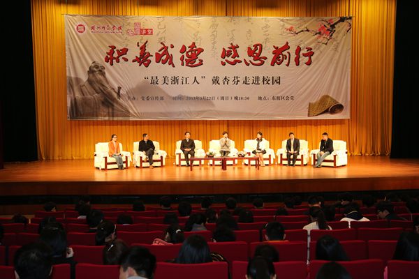 學(xué)校重視用文化藝術(shù)活動(dòng)讓學(xué)生濡染“君子之風(fēng)”。加強(qiáng)“仁”文化、“義”文化、“禮”文化的培育,引導(dǎo)廣大學(xué)生積極投身社會(huì)實(shí)踐、青年志愿者等社會(huì)活動(dòng),涌現(xiàn)了一大批先進(jìn)集體和個(gè)人。開展閱讀經(jīng)典活動(dòng),成立國(guó)學(xué)社、弘禮社等學(xué)生社團(tuán),舉辦主題征文比賽、演講詩(shī)歌朗誦數(shù)百場(chǎng),引導(dǎo)學(xué)生習(xí)“君子之學(xué)”、長(zhǎng)“君子之識(shí)”、揚(yáng)“君子之德”、從“君子之行”。每年舉辦高雅藝術(shù)進(jìn)校園、藝術(shù)節(jié)活動(dòng),舉辦上百場(chǎng)音樂會(huì)、數(shù)十場(chǎng)原創(chuàng)話劇表演;“胡瑗大講堂”共邀請(qǐng)了30余名大家學(xué)者,舉行報(bào)告會(huì)30余場(chǎng),參與師生達(dá)4萬余人次,讓學(xué)生在高雅的藝術(shù)氛圍中提升修養(yǎng),轉(zhuǎn)化氣質(zhì)。為密切師生關(guān)系,學(xué)校建設(shè)“從游”文化,每年開展各類師生交流活動(dòng)上百場(chǎng)。各二級(jí)學(xué)院自覺將“君子之風(fēng)”建設(shè)融合到自身專業(yè)文化建設(shè)中,形成了“一院一品”的文化格局。