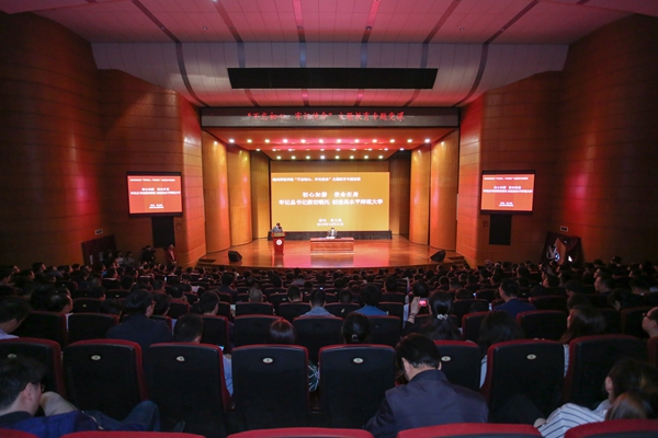 10月21日下午,校長張立欽在中校區音樂廳給師生上了題為《初心如磐 使命在肩——牢記總書記殷切囑托 創建高水平師范大學》的主題教育專題黨課。省委第五巡回指導組成員、省紀委省監委駐省教育廳紀檢監察組副組長黃根來,省委第五巡回指導組成員、省社會主義學院教務處副處長楊朔江到課指導。在校的校領導班子成員出席,全體中層干部、科級干部,各基層黨支部書記,二級學院系部主任、教研室主任,師生黨員代表等到場聆聽了黨課。本次專題黨課由校黨委副書記蔣云良主持。