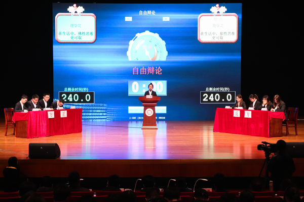 12月4日晚,校第七屆胡瑗文化節閉幕式暨第十五屆“明達杯”辯論賽決賽在東校區會堂落下帷幕。來自馬克思主義學院、外國語學院、商學院和理學院的四支辯論隊經過層層選拔,脫穎而出,最終進入決賽,給在場1000多名師生帶來了一場高水平的思想盛宴。