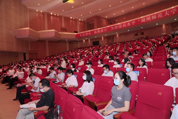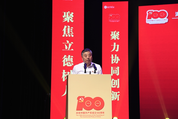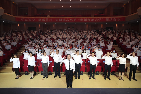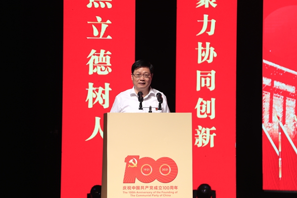 校黨委書記金佩華以《重溫百年輝煌路 砥礪奮進(jìn)再出發(fā) 以高質(zhì)量黨建引領(lǐng)推動(dòng)學(xué)校高質(zhì)量發(fā)展》為題發(fā)表講話。他指出,學(xué)校的命運(yùn)是與民族和國(guó)家的命運(yùn)息息相關(guān)的。學(xué)校必須始終堅(jiān)持黨的全面領(lǐng)導(dǎo),必須始終堅(jiān)持社會(huì)主義辦學(xué)方向,必須始終堅(jiān)持以實(shí)現(xiàn)民族復(fù)興、國(guó)家富強(qiáng)為己任。他表示,近年來,學(xué)校各項(xiàng)事業(yè)取得了較為豐碩的成果,黨的全面領(lǐng)導(dǎo)不斷加強(qiáng)、內(nèi)涵式發(fā)展不斷提速、黨建引領(lǐng)示范成效不斷彰顯。當(dāng)前,學(xué)校已經(jīng)站在了新的歷史起點(diǎn)上,接下來一段時(shí)期,是完成習(xí)近平總書記重要囑托、實(shí)現(xiàn)“大學(xué)夢(mèng)”的關(guān)鍵期,是貫徹校第四次黨代會(huì)精神、落實(shí)“三步走”戰(zhàn)略目標(biāo)和“3918”戰(zhàn)略體系的關(guān)鍵期,也是學(xué)校由教學(xué)型向教學(xué)研究型大學(xué)轉(zhuǎn)型發(fā)展的關(guān)鍵期。