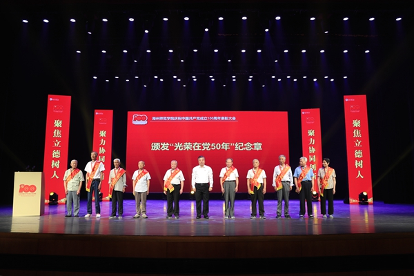 金佩華強(qiáng)調(diào),學(xué)校要牢牢把握奮進(jìn)方向和聚力發(fā)展重點(diǎn),要始終加強(qiáng)黨對(duì)人才工作的領(lǐng)導(dǎo),要奮力走好創(chuàng)建高水平“湖州師范大學(xué)”的堅(jiān)定步伐,要持續(xù)提高人才培養(yǎng)質(zhì)量和社會(huì)服務(wù)水平,要切實(shí)加強(qiáng)黨的全面領(lǐng)導(dǎo)和黨的建設(shè)。他希望全校各級(jí)黨組織、全體共產(chǎn)黨員牢記使命、敢于擔(dān)當(dāng),在教學(xué)、科研、管理、服務(wù)、醫(yī)療衛(wèi)生等各個(gè)崗位上發(fā)揮好戰(zhàn)斗堡壘和先鋒模范作用,團(tuán)結(jié)帶領(lǐng)廣大師生員工,迎難而上、不懈奮斗,為學(xué)校發(fā)展作出新的貢獻(xiàn)。為此,他向師生黨員們提出了四點(diǎn)要求,一是要始終做到政治過硬,爭(zhēng)做習(xí)近平新時(shí)代中國(guó)特色社會(huì)主義思想的信仰者實(shí)踐者;二是要始終做到責(zé)任過硬,爭(zhēng)做學(xué)校事業(yè)發(fā)展的引領(lǐng)者推動(dòng)者;三是要始終做到能力過硬,爭(zhēng)做各自工作領(lǐng)域里的有為者佼佼者;四是要始終做到作風(fēng)過硬,爭(zhēng)做政治生態(tài)最優(yōu)高校的建設(shè)者保護(hù)者。