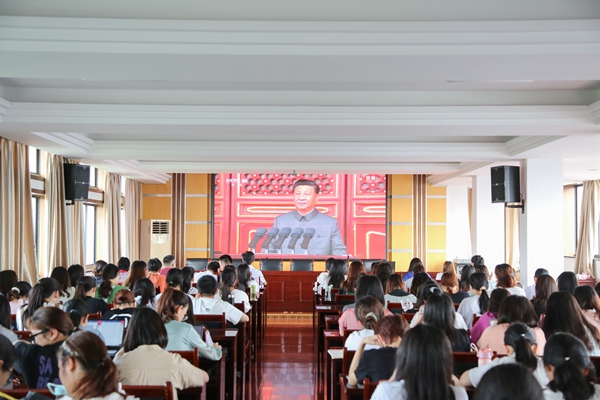 7月1日上午,慶祝中國共產(chǎn)黨成立100周年大會在北京天安門廣場隆重舉行。中共中央總書記、國家主席、中央軍委主席習(xí)近平發(fā)表重要講話。校領(lǐng)導(dǎo)班子成員帶頭觀看了大會的視頻直播,各二級單位積極組織師生進(jìn)行了集體觀看。