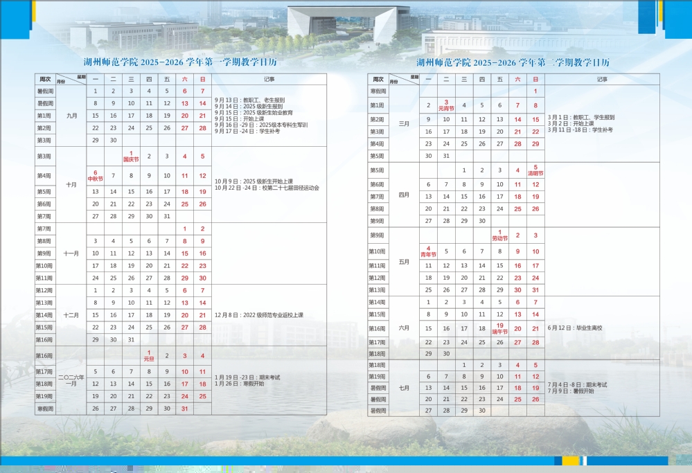 湖州師范學(xué)院2025-2026學(xué)年教學(xué)日歷