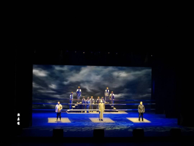 開場合唱“聲磊落,士拼搏,百死為家國,寧摧折,不蹉跎,斗轉(zhuǎn)星移過,說乾坤蒼莽蘊奇憂,好江山莫與后人愁,宣言朗朗,但出我口,用在心頭!”表達出以張人亞同志為代表的早期共產(chǎn)黨人的勇毅精神和堅定意志。