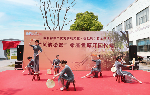4月20日下午,學校舉行教育部中華優(yōu)秀傳統(tǒng)文化(蠶絲綢)傳承基地“魚韻桑影”桑基魚塘開園儀式。校黨委書記金佩華,校黨委副書記陳永華,湖州市人大原副主任、南太湖農(nóng)業(yè)文化遺產(chǎn)保護與發(fā)展研究中心主任王勤,校黨委委員、宣傳部長杜寧,校黨委委員、黨校辦主任勞士健,湖州市農(nóng)業(yè)農(nóng)村局副局長施經(jīng),湖州荻港徐緣生態(tài)旅游開發(fā)有限公司董事長徐敏利,蠶絲綢傳承基地常務(wù)副主任余連祥出席,各二級學院黨委(黨總支)書記以及相關(guān)職能部門負責人,師生代表參加了儀式。儀式由杜寧主持。
