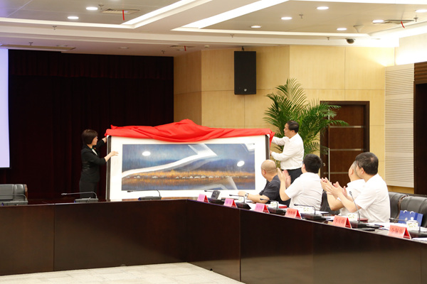 石一婷與陳永華共同為學校向長興縣捐贈的以“晨曦微露的八都岕”為主題的風景油畫揭幕,油畫作者鐘錦芳老師介紹了這幅作品創作思路。