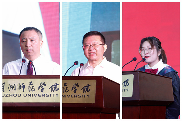 校長蔣云良在致辭中表示,同學們是學校發展的見證者、參與者、貢獻者和受益者,正是有了他們的青春奉獻,學校的發展才充滿生機和活力。蔣云良借用李大釗先生的“前途遼遠、青春無盡”八個字寄語畢業生,希望畢業生們傳承發揚“艱苦奮斗、自強不息、包容求新、博雅篤行”的師院精神,抱持“位卑未敢忘憂國”的情懷,做丹心報國的愛國者;胸懷“自信人生二百年”的豪情,做奮發有為的逐夢者;篤守“一勤天下無難事”的信念,做克己自強的實干者。