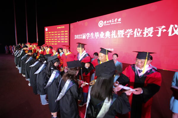 6月16日晚,我校2022屆學生畢業典禮暨學位授予儀式在東校區長興廣場舉行。校黨政領導班子出席,各相關部門負責人,各二級學院負責人、輔導員、畢業班班主任、全體2022屆畢業生參加了典禮。畢業典禮由校黨委副書記丁敢真主持。