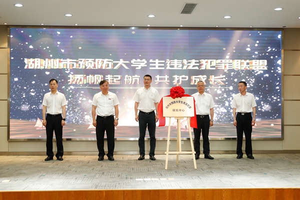 6月17日上午,湖州市預(yù)防大學(xué)生違法犯罪研究中心揭牌暨聯(lián)盟成立儀式在我校舉行。湖州市委副書記、政法委書記、市委教育工作領(lǐng)導(dǎo)小組組長蔡旭昶,浙江省檢察院檢委會專職委員沈雪中,湖州市人民檢察院黨組書記、檢察長黃輝,湖州市委副秘書長、政法委常務(wù)副書記梅旗華,我校黨委書記金佩華,校黨委副書記陳永華、丁敢真,湖州學(xué)院黨委副書記唐華,湖州職業(yè)技術(shù)學(xué)院黨委副書記葉主出席,市中級人民法院、市公安局、市司法局、市教育局、團市委、市關(guān)工委、浙江工業(yè)大學(xué)莫干山校區(qū)、浙江科技學(xué)院安吉校區(qū)、浙江宇翔職業(yè)技術(shù)學(xué)院的相關(guān)負責(zé)人,我校黨校辦、組織部、學(xué)工部、研工部、教務(wù)處、人文社科處、保衛(wèi)處、經(jīng)濟管理學(xué)院、馬克思主義學(xué)院等相關(guān)單位負責(zé)人以及學(xué)生代表參加活動。
