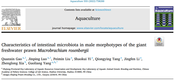 近日,我校生命科學學院楊國梁研究員團隊的研究工作取得了重要進展,以湖州師范學院為第一單位,在水產領域國際頂級期刊《Aquaculture》(SCI一區TOP)上發表了題為“Characteristics of intestinal microbiota in male morphotypes of the giant freshwater prawn Macrobrachium rosenbergii”的研究論文,我校教師高權新為第一作者,羅金萍為共同第一作者。