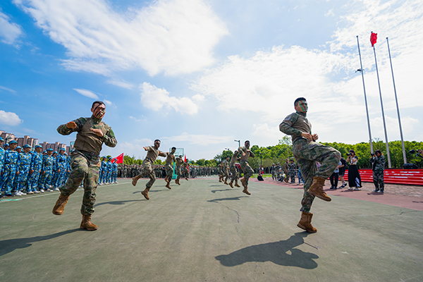 部隊(duì)教官帶來的精彩演出引爆了全場(chǎng)熱潮,同學(xué)們用掌聲和歡呼聲感謝教官,致敬教官。迷彩青春、肆意綻放,他們用無畏、用拼搏、用剛毅展現(xiàn)中國軍人的豪情和熱血。