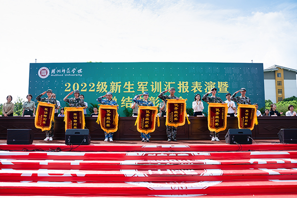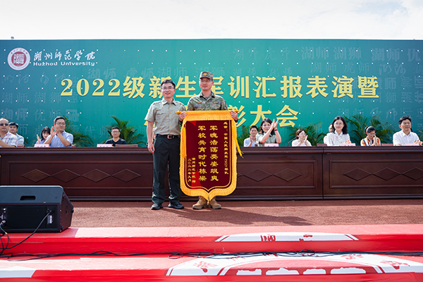 丁敢真向全體教官贈(zèng)送榮譽(yù)獎(jiǎng)?wù)拢虺杏?xùn)部隊(duì)贈(zèng)送錦旗。他代表學(xué)校向承訓(xùn)部隊(duì)表示感謝,向從事軍訓(xùn)組織和保障工作的各位老師致以誠摯問候,向2022級(jí)全體新生表示祝賀。他充分肯定同學(xué)們?cè)谲娪?xùn)過程中的出色表現(xiàn),并提出三點(diǎn)希望:一是把困難當(dāng)“墊腳石”,迎難而上不退縮,在勇拼搏、善克難中展現(xiàn)奮發(fā)姿態(tài);二是把本領(lǐng)當(dāng)“護(hù)身符”,自我提升不懈怠,在勤于學(xué)、善于思中夯實(shí)成長底氣;三是把立德當(dāng)“航船舵”,立鴻鵠志不逐流,在明明德、強(qiáng)體魄中書寫篤行篇章。