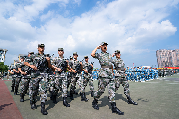 今年,我校首次邀請(qǐng)學(xué)生教官參與軍訓(xùn),他們?cè)鴧④娙胛椋谲姞I中歷練成長,今天他們用實(shí)際行動(dòng)踐行誓言:艱難不止步,挫折不退縮,家國永在心。