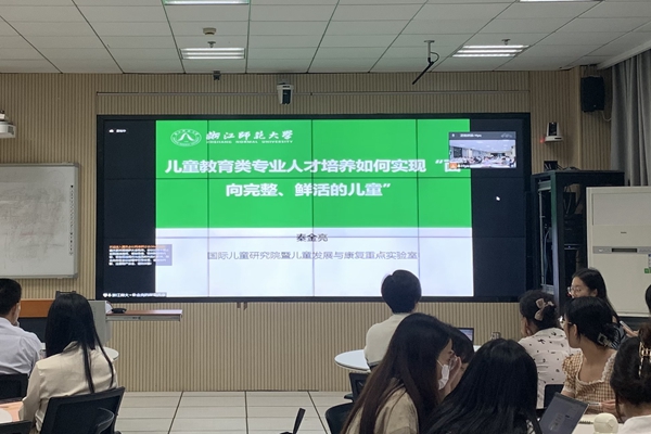 近日,教育部人文社科重點(diǎn)研究基地北京師范大學(xué)教師教育研究中心長(zhǎng)三角分中心、教師教育學(xué)院開啟湖州師范學(xué)院太湖品學(xué)教師教育學(xué)科前沿論壇系列第三講“兒童教育類專業(yè)人才培養(yǎng)如何實(shí)現(xiàn)‘面向完整、鮮活的兒童’”。主講嘉賓為浙江師范大學(xué)國(guó)際兒童研究院院長(zhǎng)暨兒童發(fā)展與康復(fù)重點(diǎn)實(shí)驗(yàn)室主任、中加人類發(fā)展聯(lián)合實(shí)驗(yàn)室中方執(zhí)行主任、中國(guó)學(xué)前教育研究會(huì)理事長(zhǎng)秦金亮教授。副校長(zhǎng)舒志定主持講座。講座采用線上線下相結(jié)合的方式,200余名老師同學(xué)參加了講座。