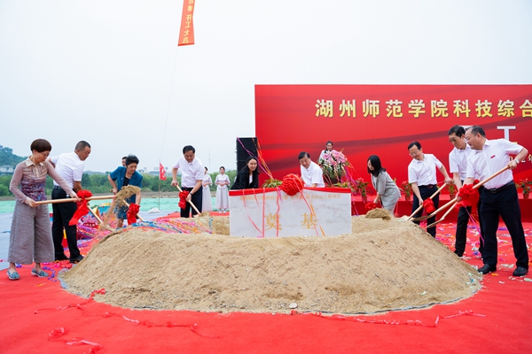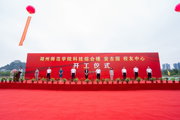 金佩華代表學(xué)校黨委和行政,對項目的順利開工表示祝賀,向一直以來關(guān)心支持學(xué)校發(fā)展的市委市政府、市級各部門和安吉縣表示衷心的感謝!他指出,科技綜合樓建成后將成為學(xué)校創(chuàng)建高水平師范大學(xué)的重要載體,有助于學(xué)校高層次人才的集聚、高能級平臺的建設(shè),更好地服務(wù)學(xué)校科研協(xié)同、文化創(chuàng)新,助推學(xué)校高質(zhì)量發(fā)展。安吉園是學(xué)校“校園十大景觀”之一,呈現(xiàn)了安吉的文化元素,成為一批批師院學(xué)子大學(xué)生活的美好記憶,這次改造并建設(shè)校友中心,將最大程度展現(xiàn)安吉踐行“綠水青山就是金山銀山”理念的成果,同時成為學(xué)校聯(lián)系校友、服務(wù)校友的重要平臺。他強調(diào),在項目建設(shè)期間,學(xué)校各職能部門以及各參建單位要各司其職,恪盡職守,強化協(xié)同,全力以赴投入到項目建設(shè)與管理中,保質(zhì)、保量、如期完成項目建設(shè),力爭建成百年精品工程,交出一份讓市、縣兩級政府和廣大師生滿意的答卷,為全面加速創(chuàng)建高水平師范大學(xué)建設(shè)提供硬件支撐,為加快建設(shè)“六個新湖州”貢獻湖師力量。