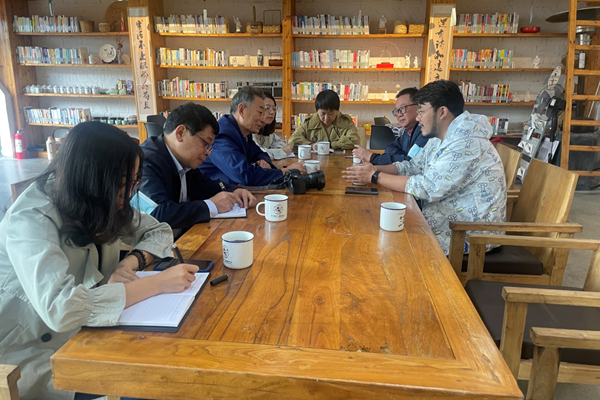 據(jù)悉,為了這次政策對話會,王景新教授通過電話訪談進一步了解湖州市長興縣煤山鎮(zhèn)新川村的近況和三家“強村公司”的發(fā)展情況,了解了甘南藏族自治州尕秀農(nóng)業(yè)有限公司及李恰如畜牧農(nóng)場經(jīng)營狀況和效益,跟蹤了浙江和江西兩家農(nóng)業(yè)科技有限公司的最新投資經(jīng)營狀況,并于10月12日帶領(lǐng) “兩山”院相關(guān)研究人員考察了妙西谷堆鄉(xiāng)創(chuàng)。在谷堆鄉(xiāng)創(chuàng)負責人蔣曉鋒陪同下,王景新一行考察了谷堆鄉(xiāng)創(chuàng)現(xiàn)有的各個業(yè)態(tài),包括鄉(xiāng)村資源交易平臺、振興書棧、匠人工作室、鄉(xiāng)村振興講壇、鄉(xiāng)村振興學院等,深入了解谷堆鄉(xiāng)創(chuàng)的發(fā)展歷程、現(xiàn)有的運營模式及將資本如何融入鄉(xiāng)村的情況。