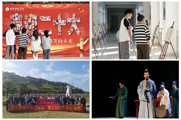 人文學院通過線上和線下結合的方式,舉辦了“喜迎二十大,筆墨繪中華”紅色經(jīng)典書法展、“青春獻禮二十大,強國有我新征程”人文學子云傳誦短視頻大賽、“永遠跟黨走,微笑向未來”百張笑臉展等系列活動,掀起學習宣傳貫徹二十大精神的熱潮。學院還組織全體教工開展“深入貫徹二十大精神 齊心共建和諧大家庭”外出研學活動;各團支部開展了“學習黨的二十大,追憶千年湖學史”活動,學生社團啟明劇社推出特別演出活動《君子胡瑗》。
