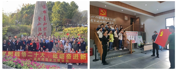 理學院、外國語學院師生黨員先后來到安吉余村,沿著習近平總書記走過的村路,實地察看了綠色生態(tài)的村鎮(zhèn)建設,近距離了解余村在“綠水青山就是金山銀山”理念指引下,從靠山吃山到養(yǎng)山富山、走生態(tài)綠色之路的發(fā)展歷程,切實感受“兩山”理念在余村的生動實踐。理學院還與湖州市濱湖高級中學開展了二十大精神主題聯(lián)學活動,黨員們在活動中以《科教興國 人才強國》為主題,圍繞二十大報告中發(fā)揮教育的基礎性作用,教育優(yōu)先發(fā)展,為黨育人,為國育才,辦好人民滿意的教育,加快建設高質量教育體系等內(nèi)容開展了學習。