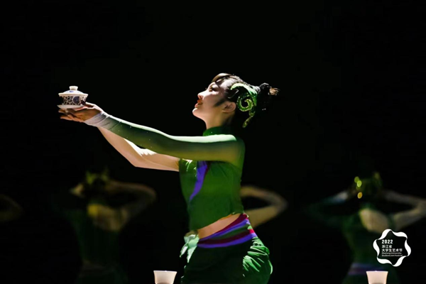 本次大藝節以“民族魂·中國夢”為主題,分舞蹈、戲劇、十佳歌手三個專場。據悉,全省98所高校共選送舞蹈、戲劇及校園十佳歌手節目647個,其中49所高校的154個節目入圍現場展演。在獲獎作品中,由教師教育學院張桂錦老師指導的《染坊往事》生動展現了具有江南水墨韻味的染坊圖景,靈動柔美的肢體語言與跨越時空的文化共鳴贏得了現場觀眾的陣陣掌聲;由音樂學院潘曉敏、彭玨非、姚元鵬老師指導的《茶飄香》《額爾古納河》以如云似水的舞姿描繪了自然與人文景觀的秀麗,表達了無盡的中華文化與意境之美,這三部極具中國特色的舞蹈作品均榮獲舞蹈甲組一等獎。此外,《九色鹿》《喜水》兩部作品榮獲舞蹈甲組三等獎;陳傳同學憑借《刮起一陣不祥的暴風雨》的精彩演繹,榮獲校園十佳歌手乙組優秀歌手。