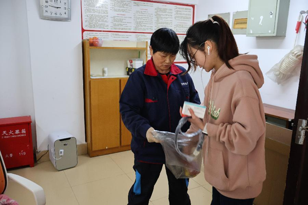 姚海英覺(jué)得與學(xué)生們共度的時(shí)光是快樂(lè)且值得回味的。她總會(huì)帶著微笑和同學(xué)打招呼,把自己家里做的飯菜與同學(xué)們分享,幫同學(xué)們翻曬被子。一件件微不足道卻又充滿愛(ài)的小事,都在潛移默化中感動(dòng)著每一位學(xué)生。同學(xué)們也會(huì)熱情回應(yīng)每一份溫暖,路過(guò)時(shí)向姚阿姨主動(dòng)問(wèn)好、和姚阿姨一起分享美食。“我把30幢的每一個(gè)女學(xué)生都當(dāng)成我的孩子,看到她們開(kāi)心的樣子我會(huì)感到無(wú)比幸福。”漸漸地,這些充滿愛(ài)的小事和問(wèn)候的話語(yǔ),使姚海英與30幢同學(xué)之間的感情更加深厚,她們共同營(yíng)造出溫馨又美好的宿舍環(huán)境。