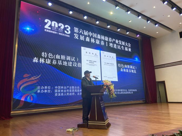 我校經濟管理學院張建國教授是《特色(血糖調適)森林康養基地建設指南》的執筆人和《特色(血糖調適)森林康養規范》的主要參與人。該標準的發布將進一步規范森林康養基地建設,為我國森林康養產業的特色化、主題化發展提供強有力的技術支撐。浙江省林業產業聯合會副會長、浙江省林業局原二級巡視員吳曉平代表編制工作團隊,在會上介紹了兩項標準的編制工作過程、成果的主要特色,并提出了成果應用的若干設想。