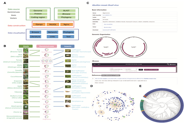 3)“Phylogeny”:基于雙生病毒全基因組序列比對,構建了目前最為全面的雙生病毒科的系統發育關系;