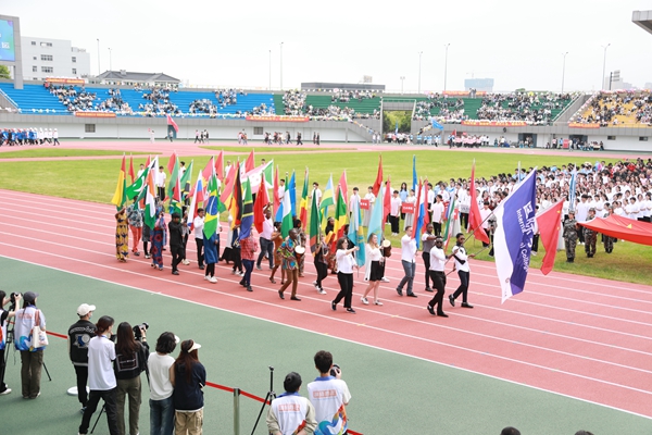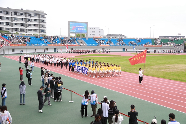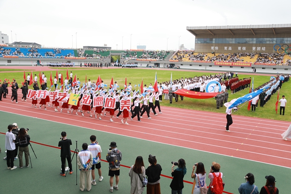 伴隨著雄壯的《運動員進行曲》,國旗護衛隊、校運動會會徽隊以及全體裁判員、運動員邁著整齊的步伐,精神飽滿地步入運動場。各代表隊的隊列方陣依次走過主席臺前,向師生們展現了各學院的靚麗風采。