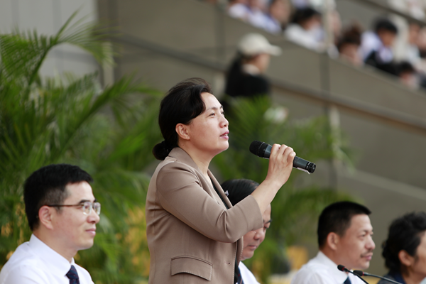在全校師生們熱烈歡呼聲中,許慧霞宣布我校第二十四屆運動會開幕。