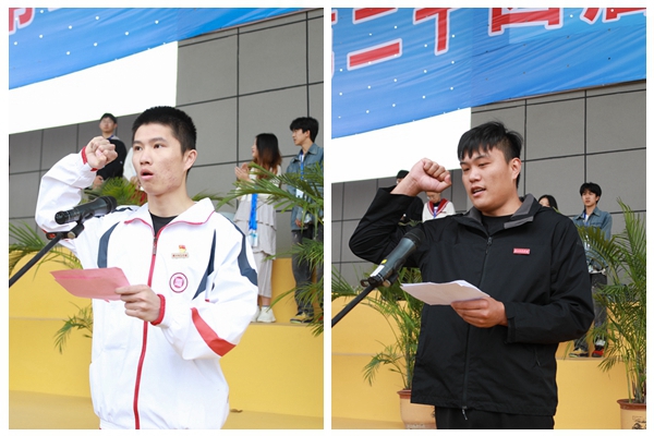 裁判員代表、體育學院教師金志鴻,運動員代表、工學院學生邱俊鑫分別鄭重宣誓。