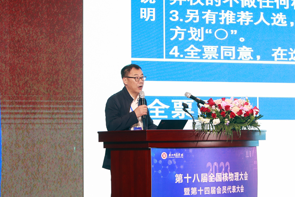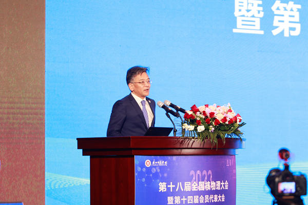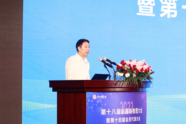 陳東風宣讀中國核學會賀信。賀信指出,全國核學會核物理分會成立以來,加強了核物理研究在我國國民經濟方面的應用研究,提升了我國核物理的研究能力與水平,團結凝聚了核物理研究領域的優秀人才,壯大了中國核學會的實力和影響力,為我國核事業建設作出了重要貢獻。