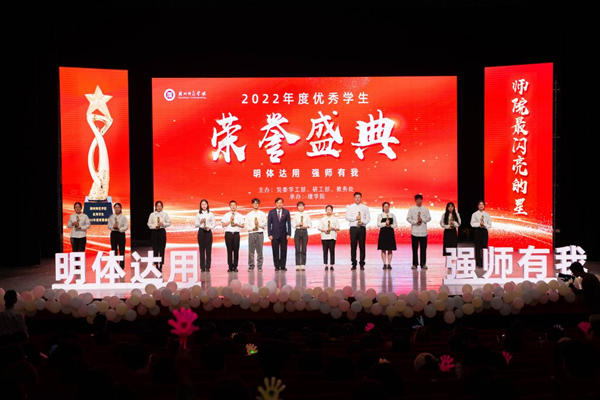 近年來,學校堅持立德樹人根本任務,不斷完善學生評優評獎體系,通過舉辦榮譽盛典等活動表彰先進、樹立榜樣,傳承湖師精神,激勵更多學子向榜樣學習,志存高遠、腳踏實地,讓奮斗成為青春最亮麗的底色。