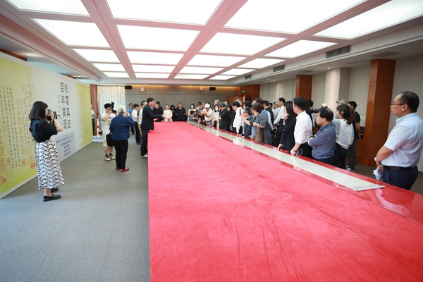儀式結(jié)束后,與會領(lǐng)導(dǎo)、嘉賓和師生們共同欣賞了在湖州巡展的趙孟頫小楷真跡《臨黃庭經(jīng)》。