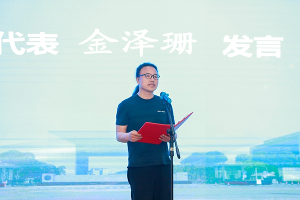 教師代表金澤珊發(fā)言。他表示,能加入以趙孟頫為名的學(xué)院讓人倍感自豪。學(xué)院教師們將以認(rèn)真嚴(yán)謹(jǐn)?shù)闹螌W(xué)態(tài)度和敬業(yè)務(wù)實的工作精神,立足教研與創(chuàng)作,不斷傳承創(chuàng)新,努力培育出一大批優(yōu)秀的書畫藝術(shù)人才。