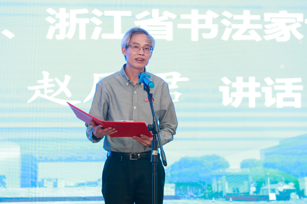 趙雁君闡釋了在湖州師范學(xué)院成立趙孟頫美術(shù)學(xué)院的重要意義。他希望學(xué)院優(yōu)化教育職能、深化研究職能、強化創(chuàng)作職能,持續(xù)推廣、傳承和發(fā)展好中國書畫藝術(shù),努力打造書法創(chuàng)作高地、學(xué)術(shù)高地、人才高地以及浙江新時代文化高地。