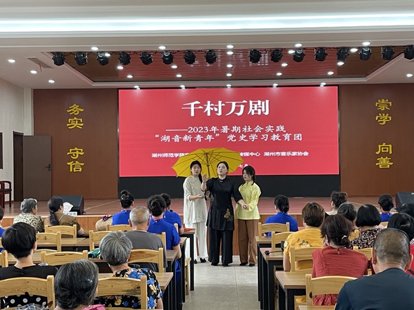近日,在長興縣和平鎮灘龍橋村文化禮堂,音樂學院千村萬劇——“湖音新青年”暑期社會實踐團隊27名師生正在傾情演繹原創音樂劇《江南紅嫂》,將現場觀眾拉回到當年激情燃燒、熱血澎湃的革命歲月。