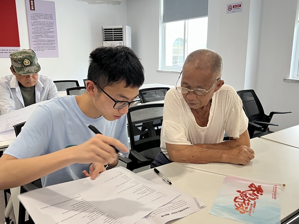 在朝陽街道小紅磚宣講基地,社區的老黨員們齊聚一堂。“00后”的宣講員陳奕冰正在給大家講述共產黨人不忘初心、牢記使命的時代故事。“有些人從山里走了,就不再回來,你從城里回來,卻再沒有離開。”陳奕冰結合思政專業特長,以“七一勛章”獲得者黃文秀為例,將她執意下鄉加入脫貧隊伍,踏遍山頭只為奉獻青春的偉大脫貧攻堅精神融入到整個宣講之中。現場氣氛熱烈,老黨員們紛紛參與其中,結合自身經歷深情講述黨的故事。這場別開生面的宣講讓學生們從“臺上講”到“臺下聽”,讓老黨員們從“臺下聽”到“臺上講”。實踐隊員們不僅宣講了黨的二十大精神,更牢記老黨員幾十年如一日聽黨話、跟黨走的堅定信仰,大家紛紛表示要繼續做好傳聲筒,當好播種機,發揚好黨的優良傳統,賡續好黨的精神血脈。