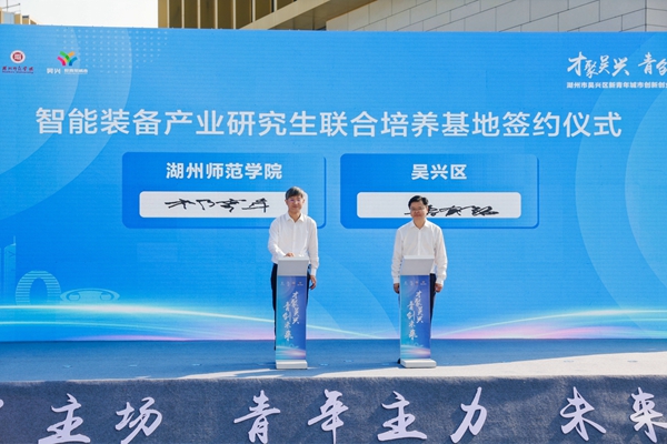 活動中,吳興區委常委、組織部長、區委人才辦主任魯有銘和湖州師范學院研究生院院長祁亨年就共建“智能裝備產業研究生聯合培養基地”進行了簽約儀式。