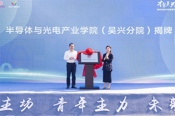吳興區副區長朱毅媛和湖州師范學院教務處處長唐衛寧為半導體與光電產業學院(吳興分院)進行了正式揭牌。